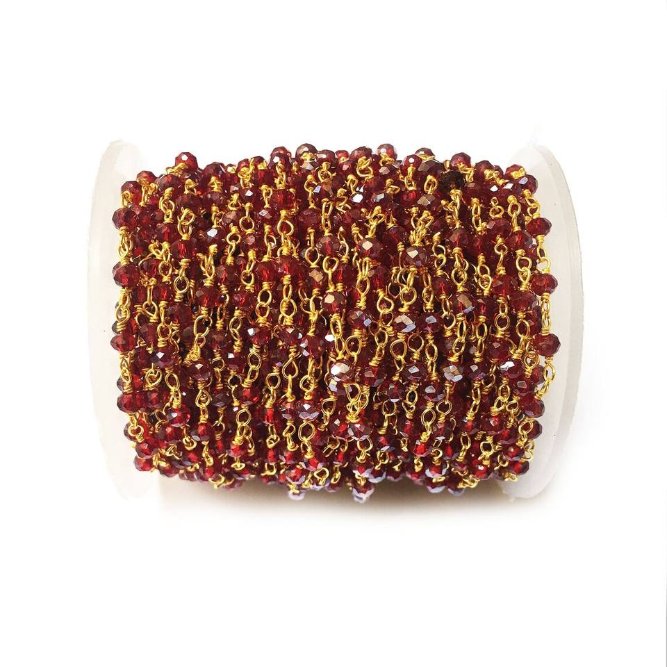 Chaîne de chapelet hydroperlé en quartz rouge, chaîne de placage jaune ronde 3-3.5mm, 3-50 pieds, chaîne de chapelet en vrac en gros