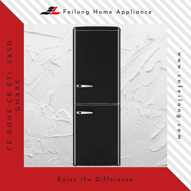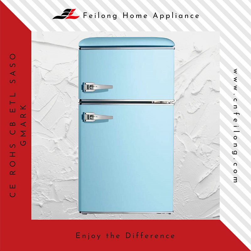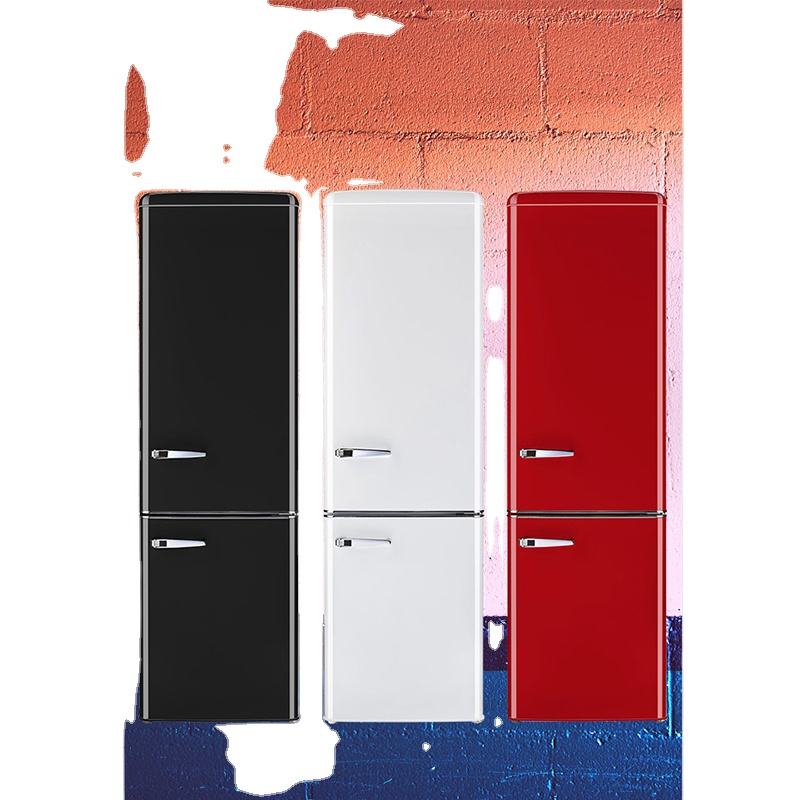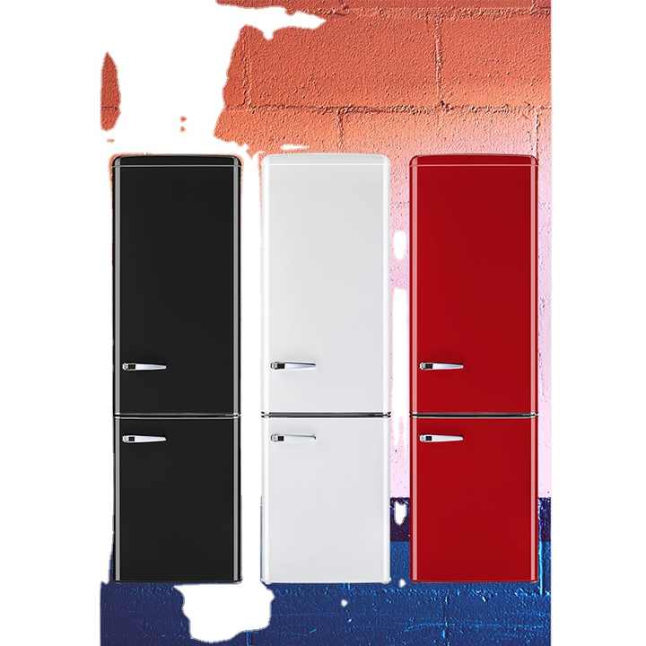Réfrigérateur compact rétro rouge à double porte avec compartiment congélateur
