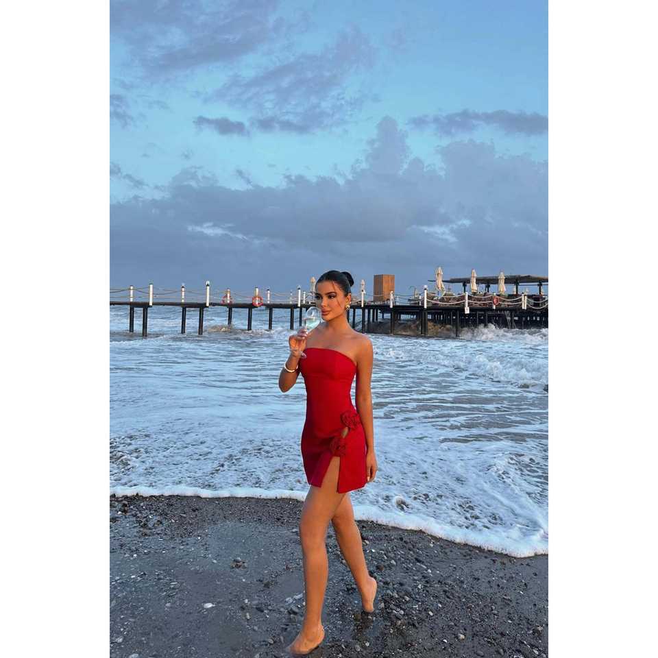 Mini robe de cocktail avec détail rose rouge
