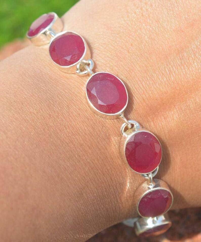 Keyword:Red Ruby multi fire Tennis Glowing Expansive Ruby Bracelet Crafted