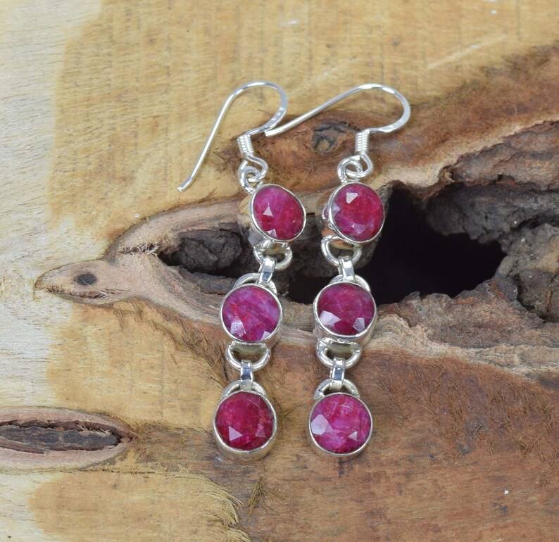 Mot-clé:Boucles d'oreilles puces rubis rouge avec pendentifs étincelants en pierres précieuses