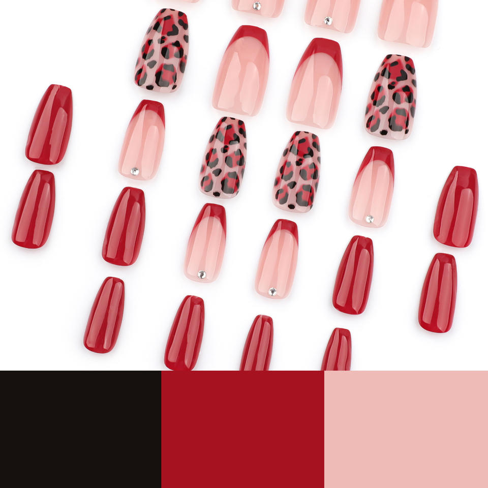 Faux ongles en ABS réutilisables de couleur rouge unie, style français, automne et hiver, nouveaux ongles en stiletto à presser