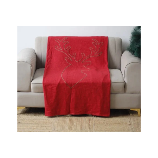 Jeté d'intérieur en tissu sergé de fil recyclé de renne rouge uni, durable et écologique, 50x70 pouces, certifié ISO 9001, fabriqué en Inde, pour les acheteurs soucieux de l'environnement