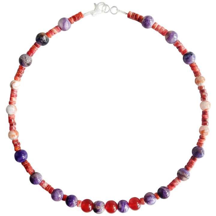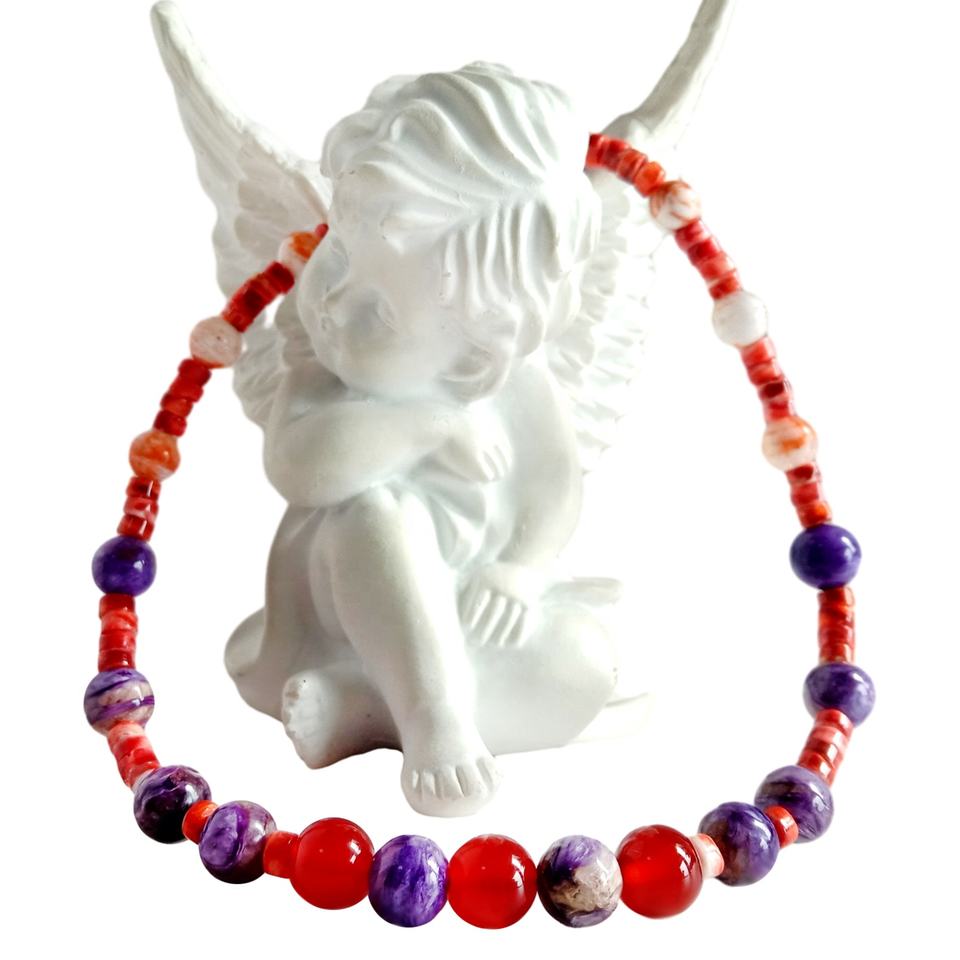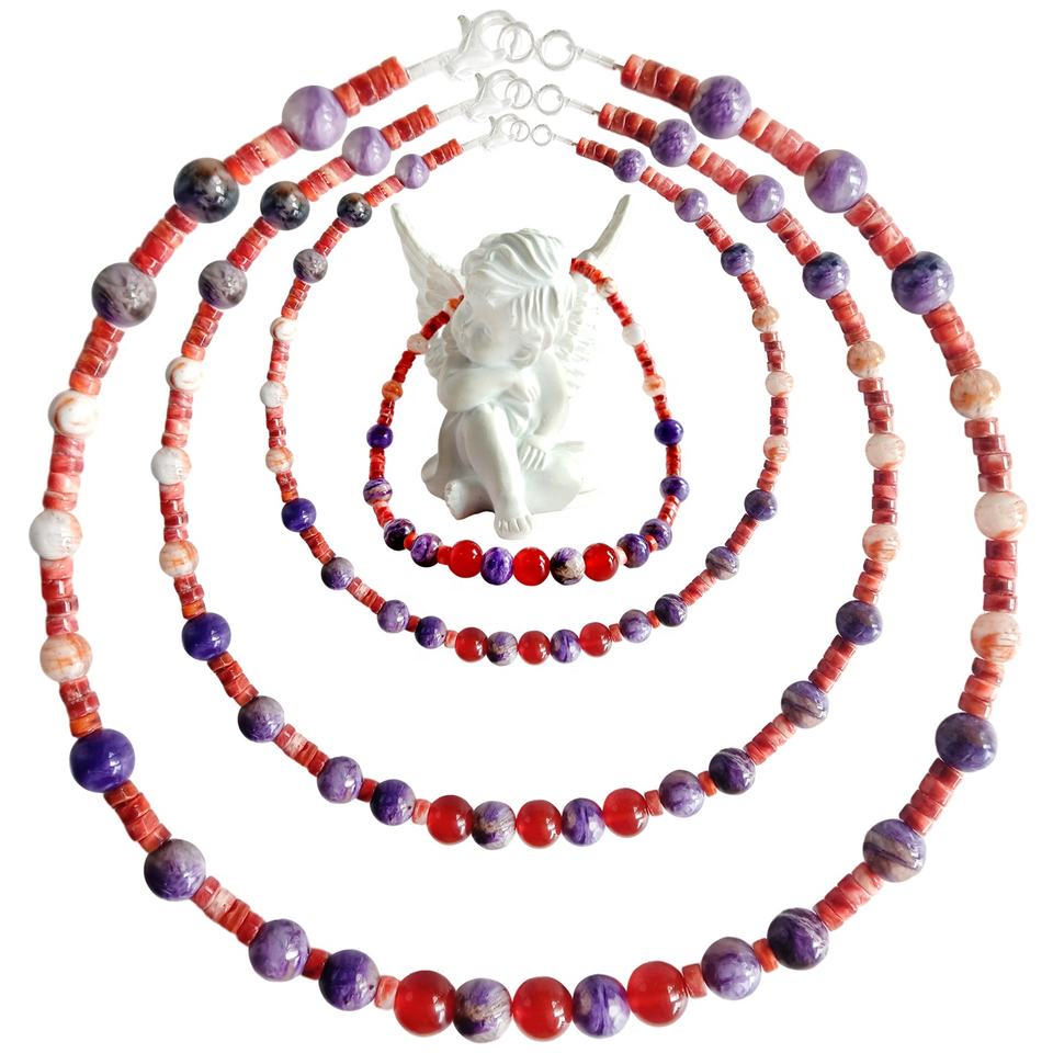 Perles d'huître rouge épineuse avec flocon de neige Quartz fantôme et pendentif en pierre précieuse onyx rouge Charoite Méditer Cadeau pour les femmes