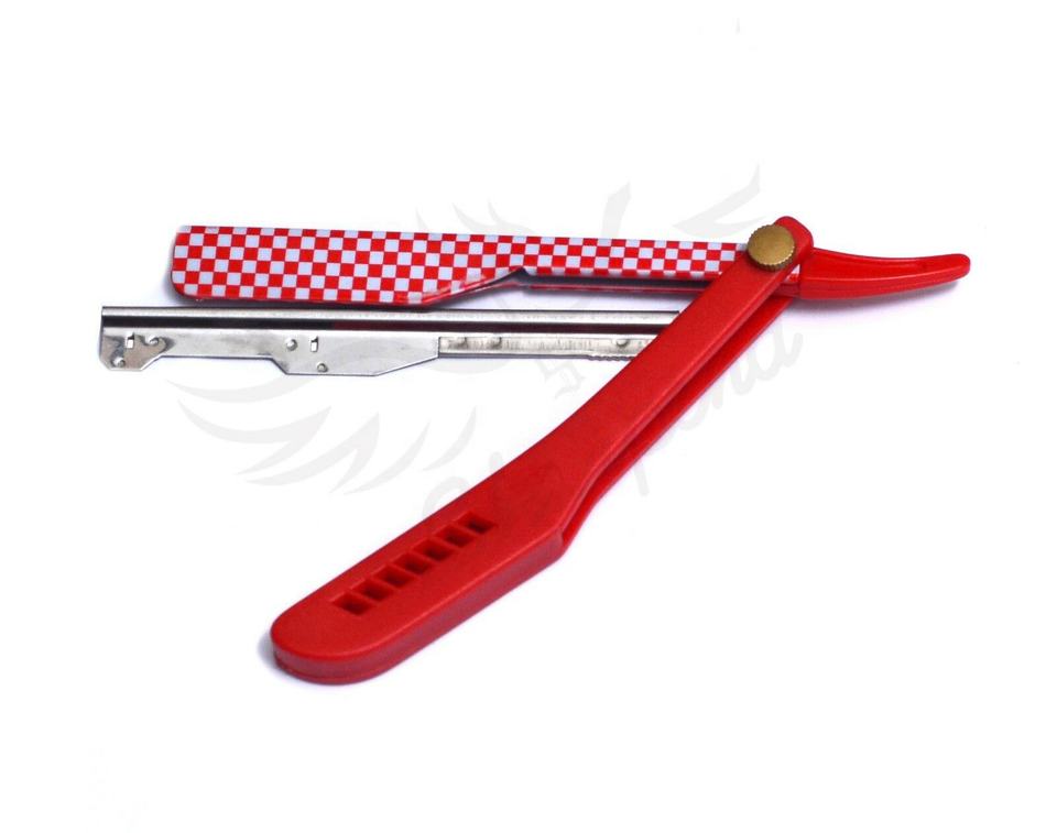 Rasoir professionnel pour le rasage de la gorge en acier inoxydable Red Throat avec lame simple, couteau pliant réutilisable