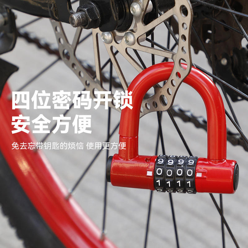 Antivol en U rouge avec chaîne 120 cm en alliage pour vélo, moto, durable, pour vélos, VTT, vélos de ville