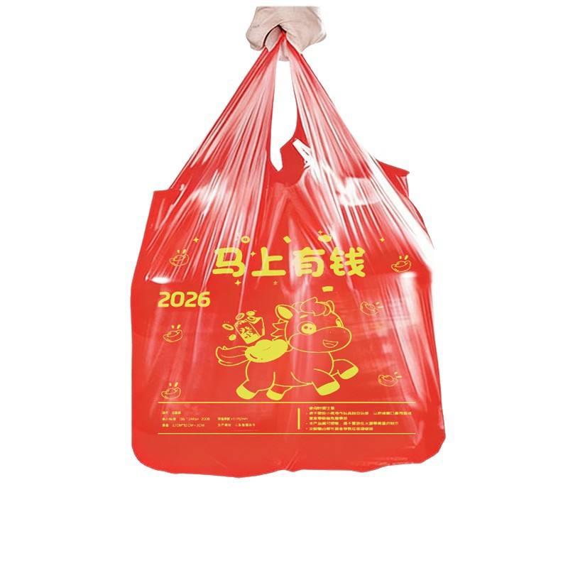 Sacs poubelles rouges 2026 Année du Cheval, épais, imprimés sur mesure, rouges chinois, pour usage domestique