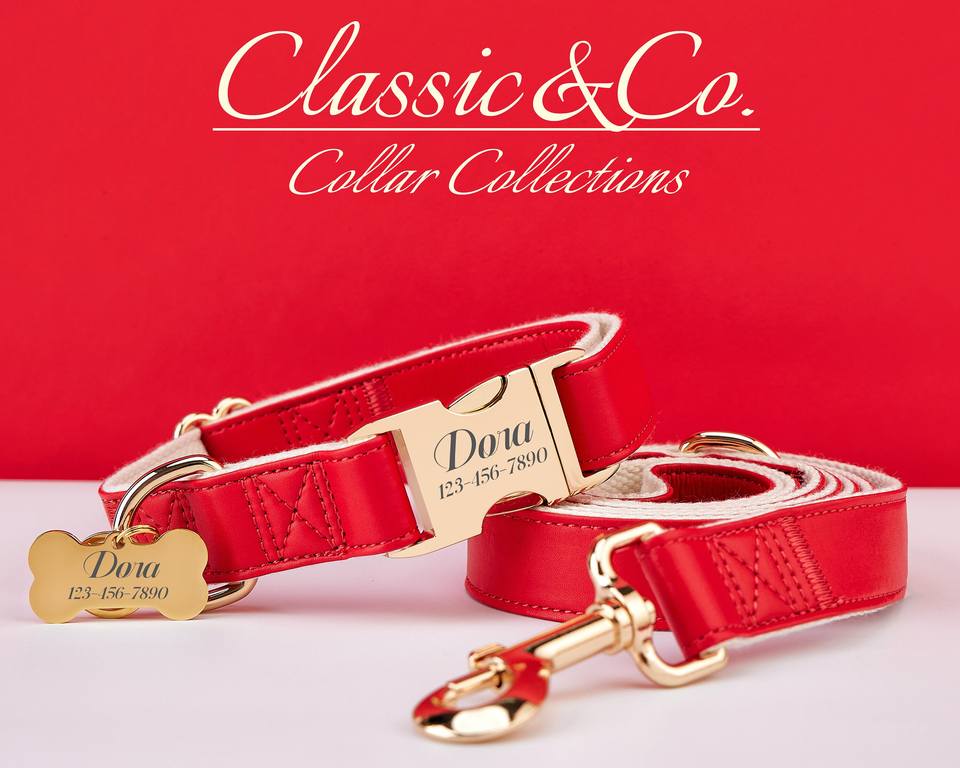 Cuir PU imperméable rouge et plomb, ensemble de laisse pour collier de chien solide, plaque de boucle en métal gravée + étiquette de nom d'animal de compagnie gratuite, cadeau de chiot de mariage