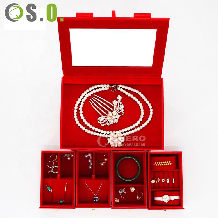 Boîte de rangement portable en cuir PU pour bijoux de voyage, grande capacité, pour bagues de mariage rouges, boucles d'oreilles et colliers