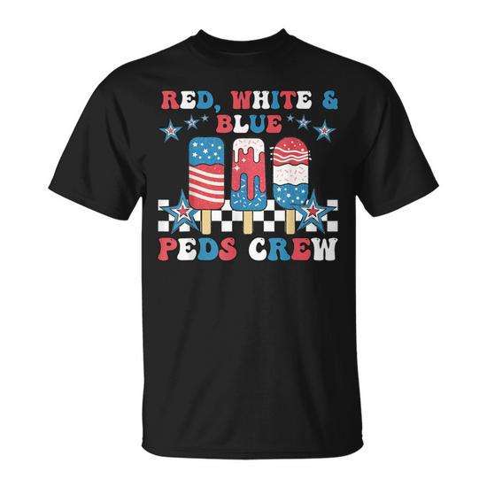 T-shirt à manches courtes rouge, blanc et bleu, col ras du cou, unisexe, design patriotique du 4 juillet