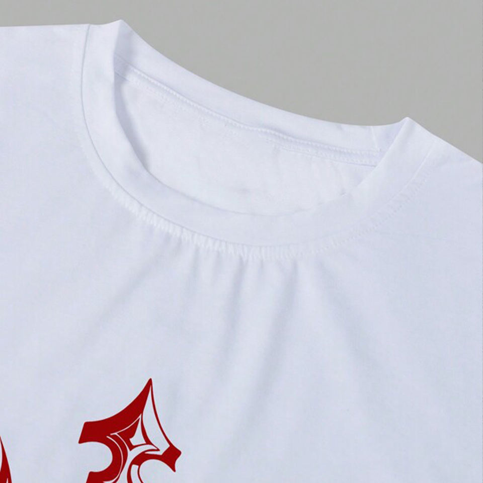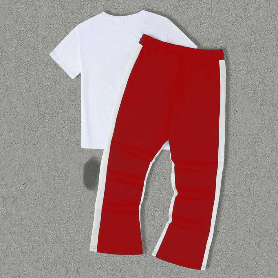 Ensemble imprimé de lettres gothiques rouges et blanches pour hommes T-shirt graphique personnalisé avec cordon de serrage Joggers à taille double panneau Streetwear survêtement