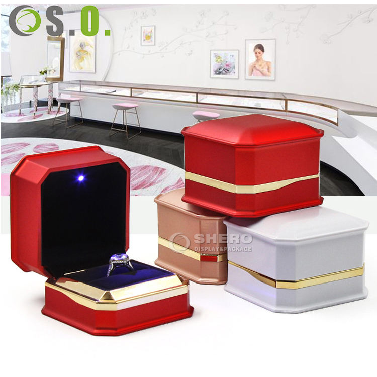 Boîtes à bijoux en plastique personnalisées avec logo, rouge et blanc, pour bagues, pendentifs, bracelets, colliers, vente en gros