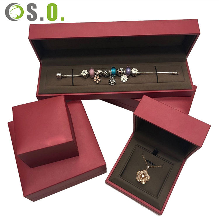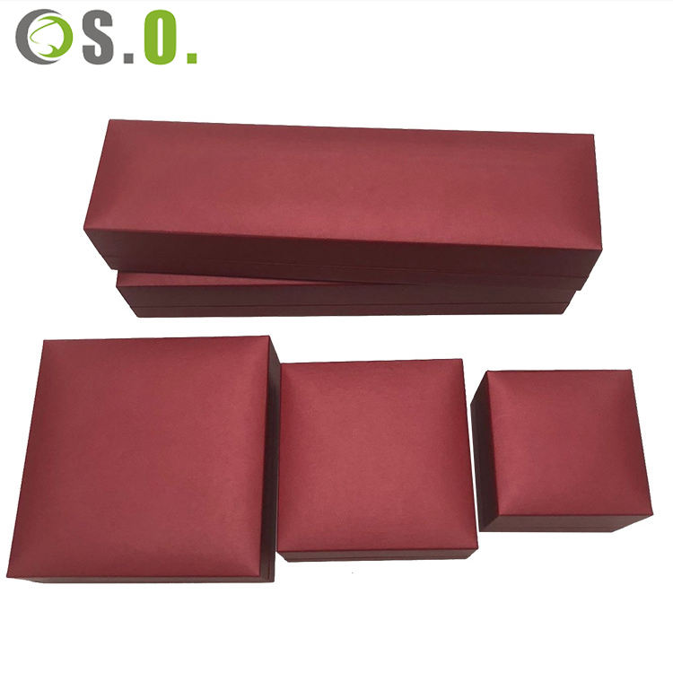 Boîte en papier imitation cuir rouge en gros pour mariage, emballage personnalisé de bijoux, boîte à bijoux