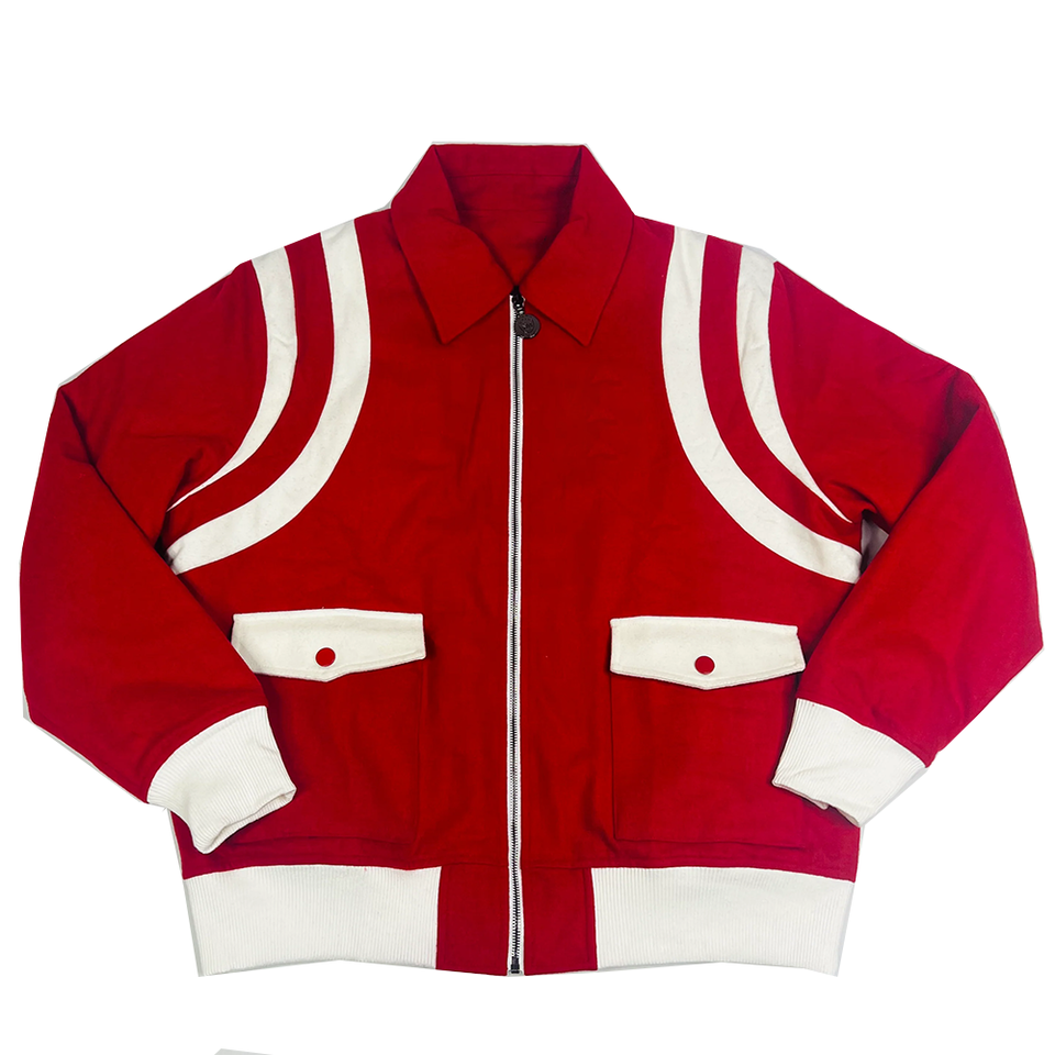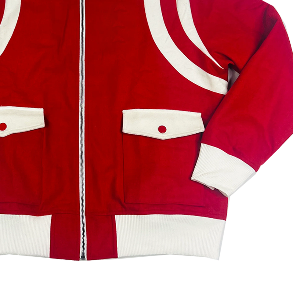 Blouson Bomber en Soie et Laine Rouge, Vente en Gros OEM, Streetwear, Varsity, Casual, Printemps, Doublure en Satin Personnalisée, Logo Appliqué sur le Devant