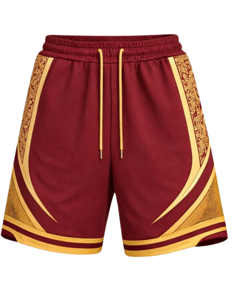 Shorts de basketball pour hommes rouge et jaune, respirants, séchage rapide, pour entraînement sportif, gym, course à pied, athlétisme, taille élastique, fabricant OEM