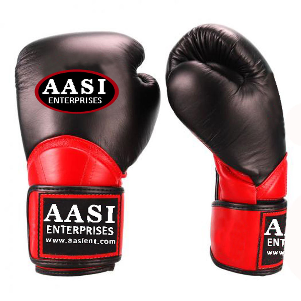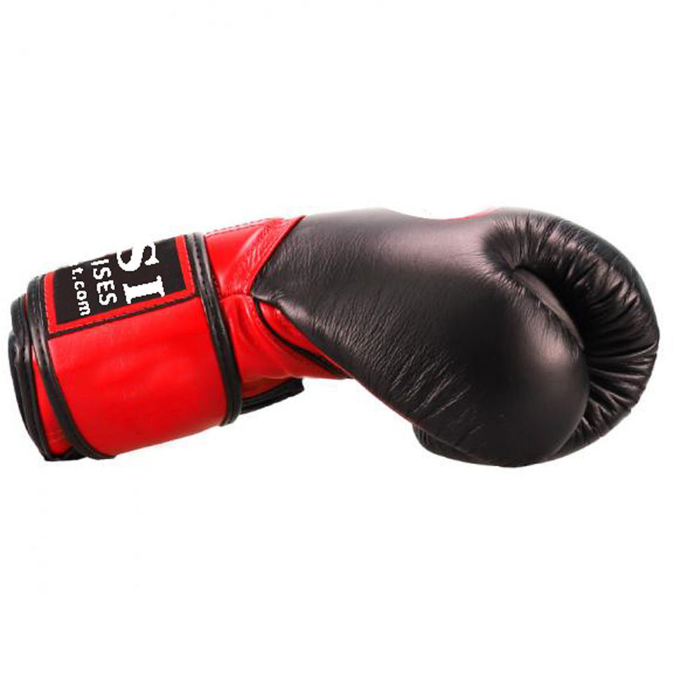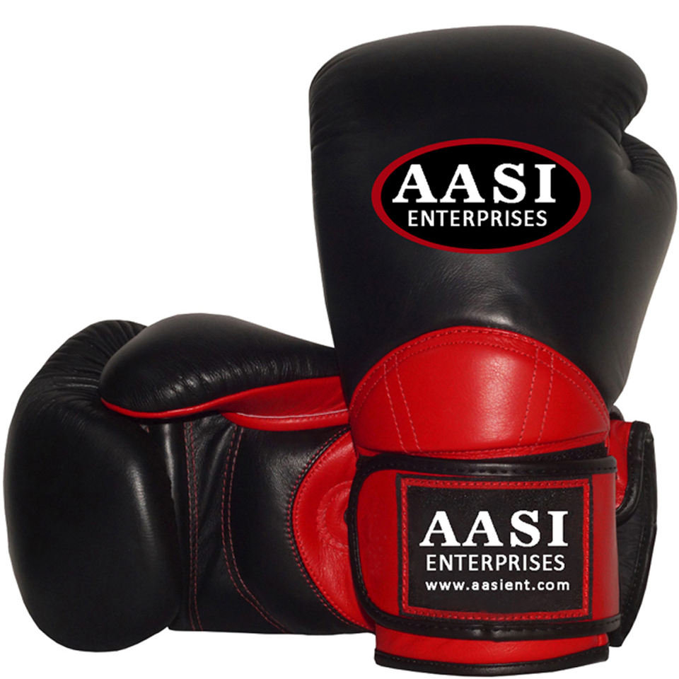 Gants de boxe professionnels en cuir de vachette rouge et noir avec logo personnalisé et fermeture auto-agrippante, fabriqués au Pakistan