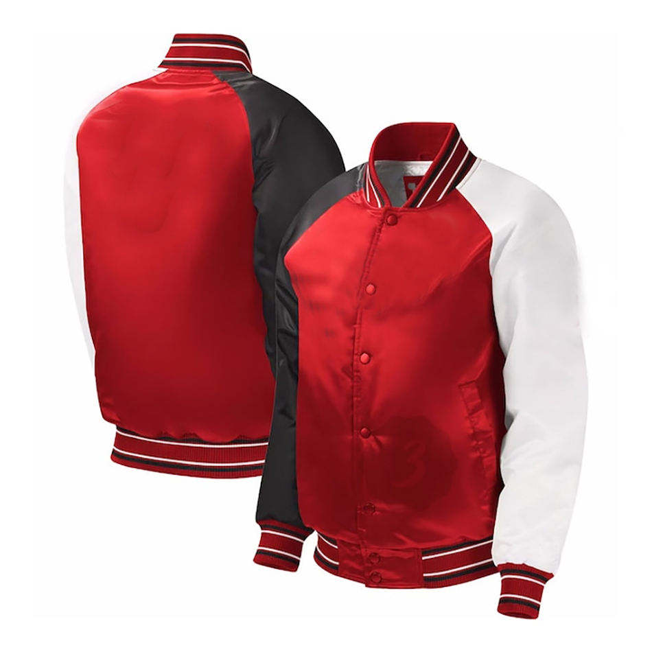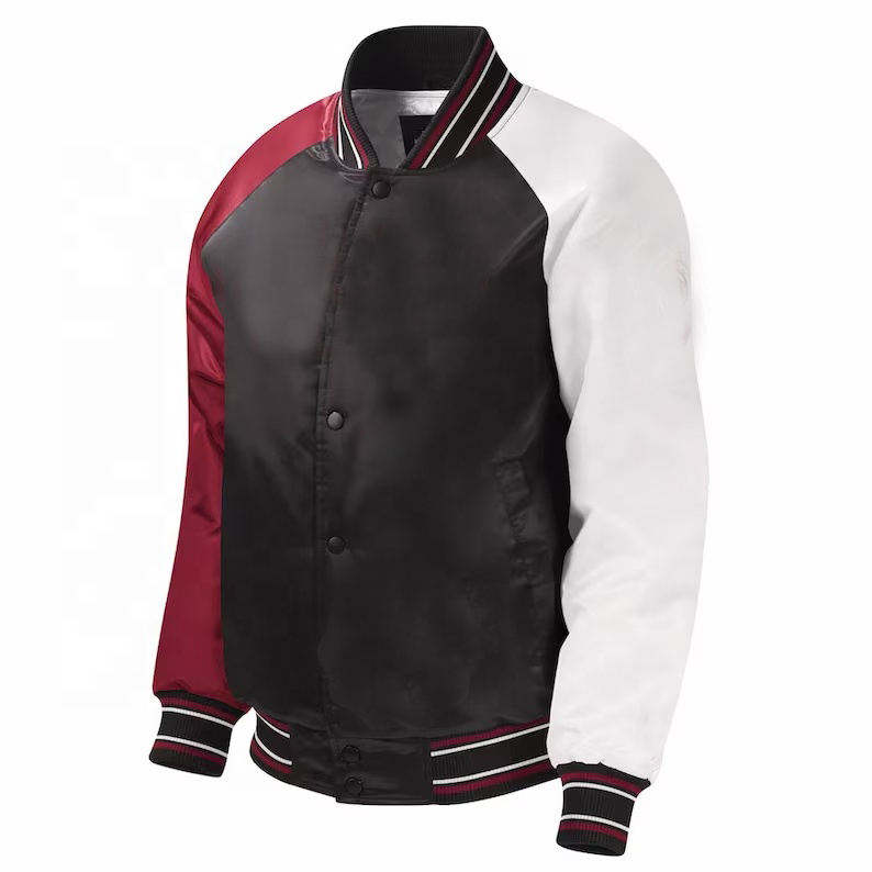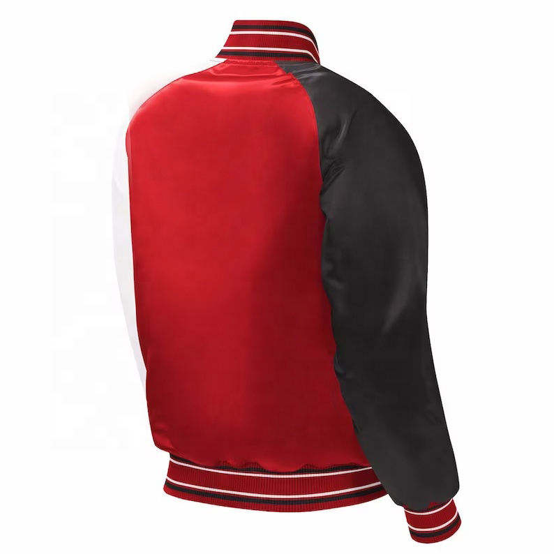 Bomber universitaire rouge noir blanc avec poignets rayés vêtements d'extérieur de style baseball streetwear rétro classique boutonné mode athlétique