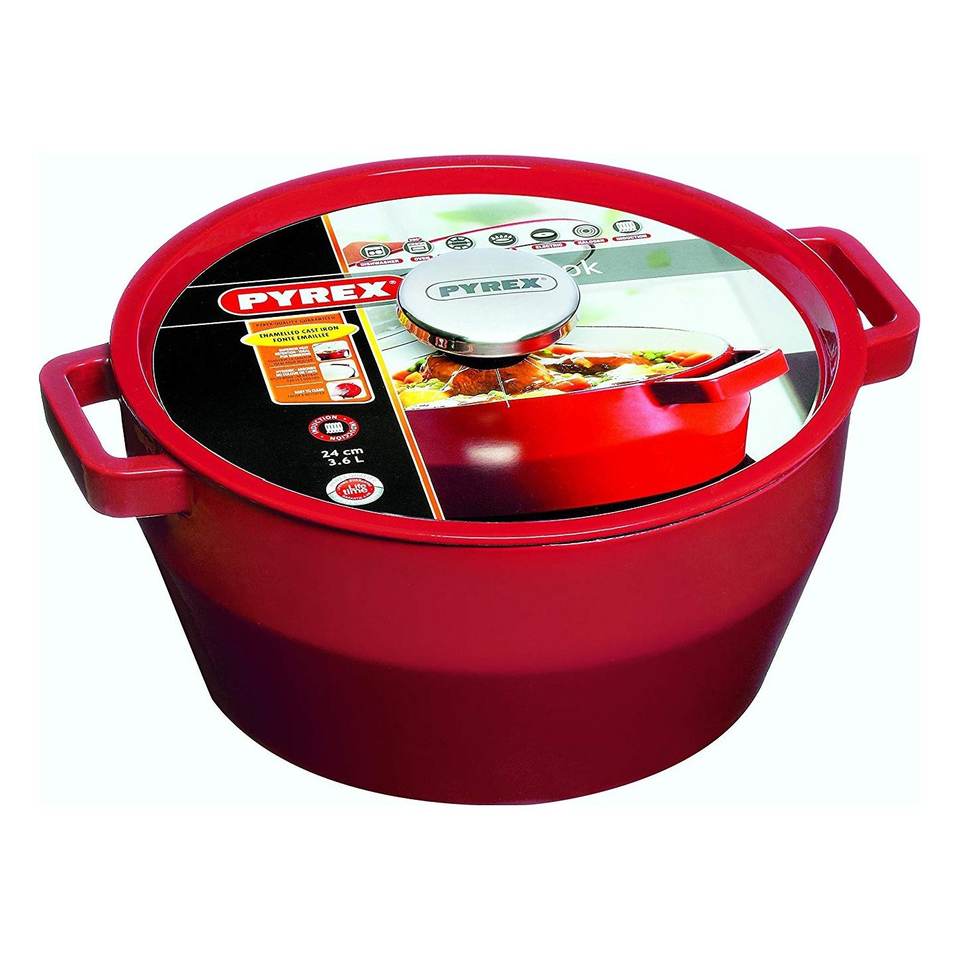 Casserole en fonte Pyrex rouge avec couvercle 24x13cm-SC5AC24 6641