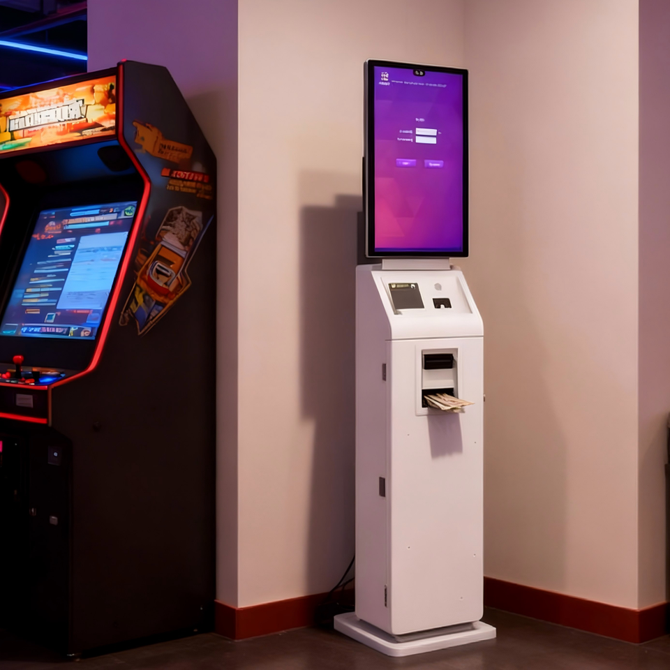 Bornes de paiement automatiques pour jeux de récompense, terminal de paiement en espèces, écran LCD en ligne, machine sur site