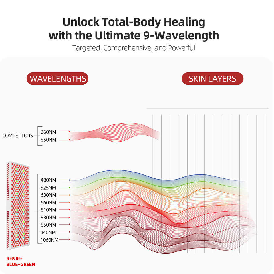 630nm, 660nm, 810nm, 830nm, 850nm, 1060nm, 480nm, 525nm, 940nm