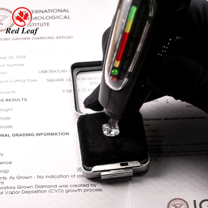 Diamant de laboratoire de qualité supérieure HPHT/CVD Redleaf en gros, 1-5 carats, couleur E, clarté VS, taille carrée coussin, avec rapport IGI