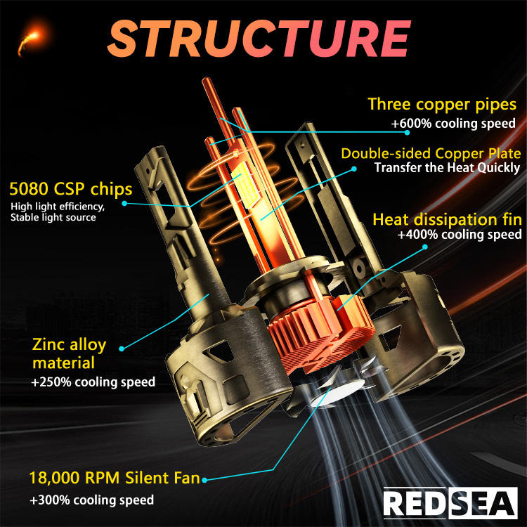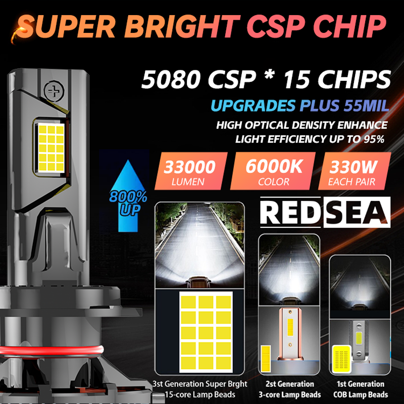 Phares de Voiture LED Haute Puissance Redsea R33 300W 12V 30000LM Système d'Éclairage Automobile Ampoules LED H1 H4 H7 9005 9006