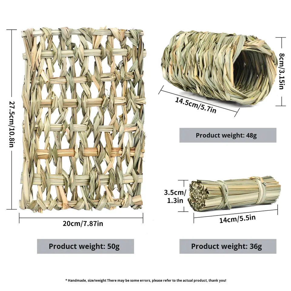 Jouet à mâcher rond comestible et écologique en herbe de roseau pour hamster, chinchilla, lapin, cobaye