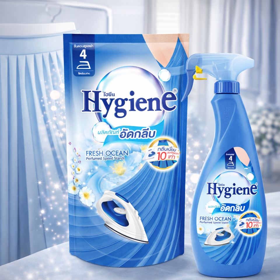 Recharge en sachet 900ml Ocean Fresh Hygiene Speed Starch Nettoyant textile liquide parfumé Lisse