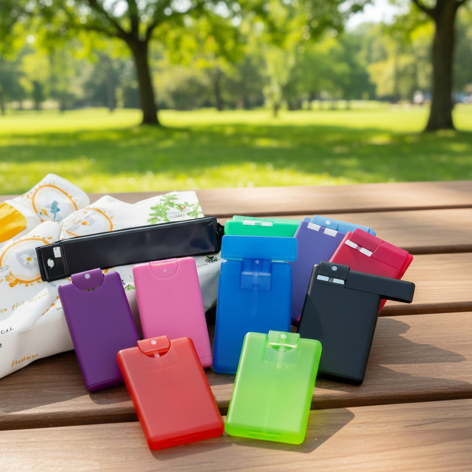 Flacon pulvérisateur de poche rechargeable de 20 ml en PET pour désinfectant à l'alcool et parfum, avec pompe pulvérisatrice, forme de carte de crédit, portable et réutilisable