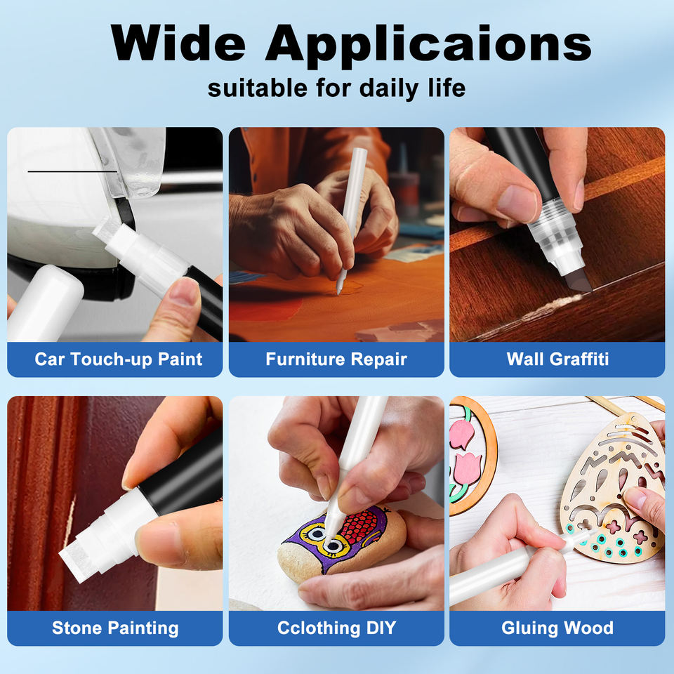 Stylos à peinture rechargeables 50 mm, marqueur permanent acrylique vide à pointe plate, marqueurs de peinture graffiti