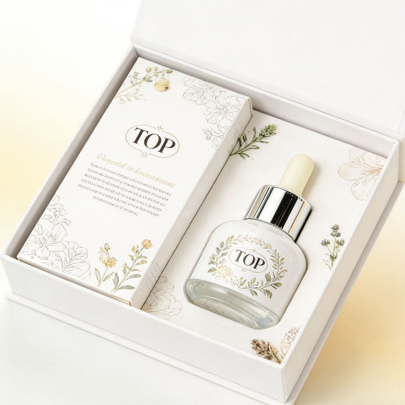 Bouteille en verre vide ronde rechargeable, blanche brillante, pour emballage cosmétique, bouteille d'huile essentielle