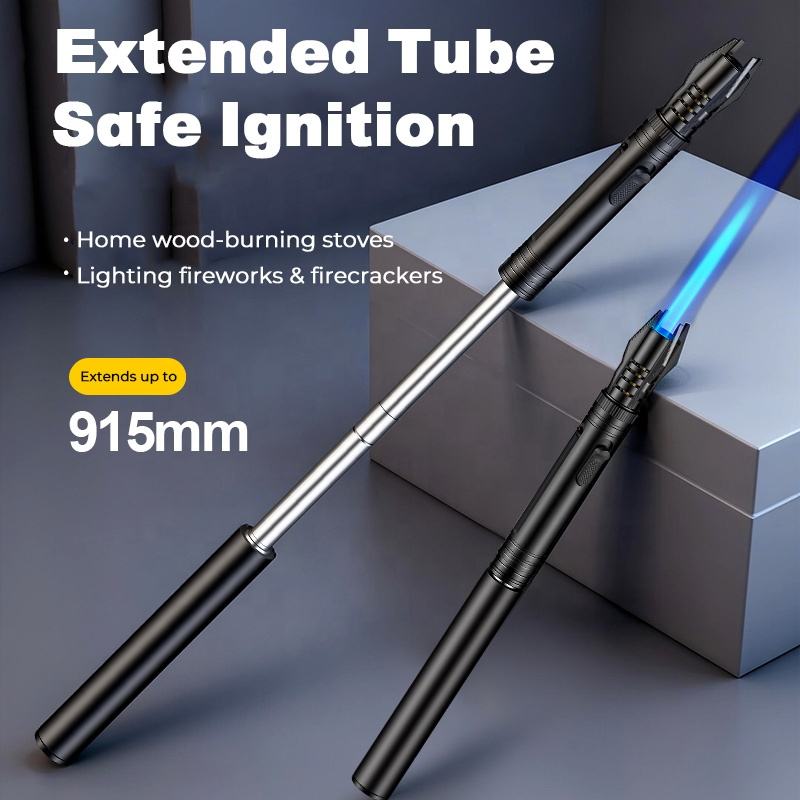 Briquet torche à flamme jet télescopique coupe-vent rechargeable avec lumière COB, briquet personnalisé pour cigarettes, cadeaux, longue portée, pour bouteille
