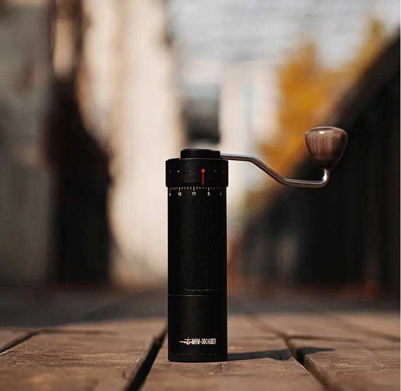 Moulin à café R3 à lame affûtée, poignée en bois de noyer naturel, réglages ajustables du grossier au fin, broyage manuel