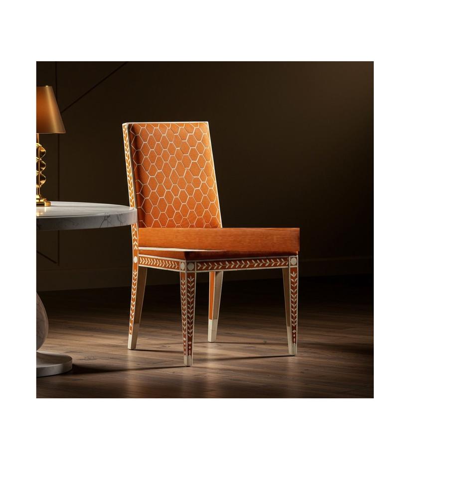 Chaise en résine avec incrustations de os raffinées, offrant une beauté intemporelle et un siège fonctionnel pour les maisons design.