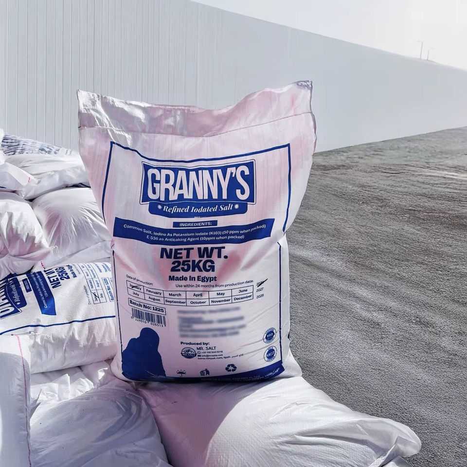 Sel de mer iodé raffiné en poudre, agent anti-agglomérant | Pureté de 99,8% de GRANNY'S | Sac de 25 kg de sel de table égyptien de qualité alimentaire HACCP