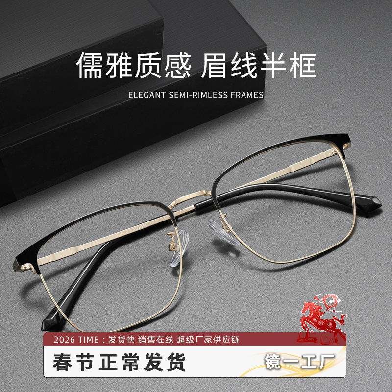 Lunettes de vue demi-cerclées pour homme Refined Scoundrel, monture rectangulaire noire et or, légères, 96066, origine Danyang