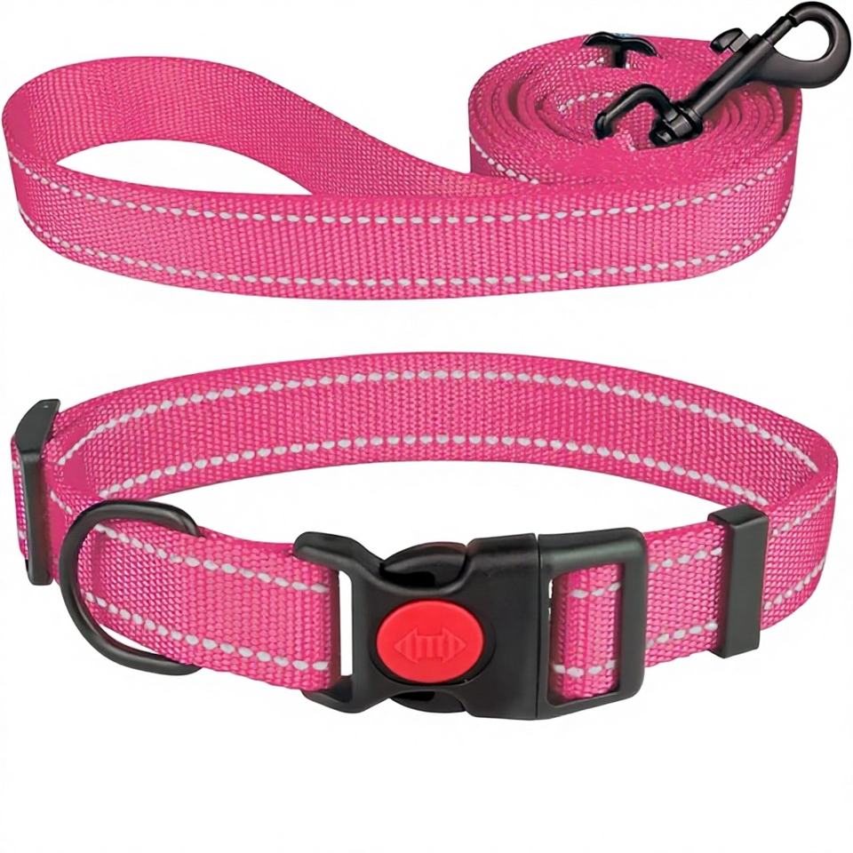 Ensemble collier et laisse réfléchissants pour chien avec boucle à dégagement rapide, en nylon réglable pour chiens de petite/moyenne/grande taille - Stpiatue