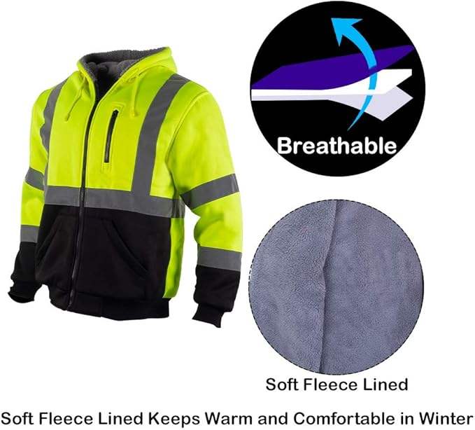 Reflective Fleece Hoodie Wholesale Construction Cotton Safety Work Clothing Men Work Hi Vis Fr Traffic Work Wear Hoodie