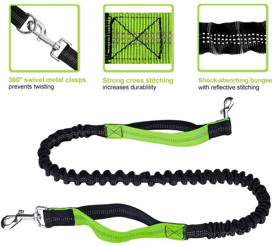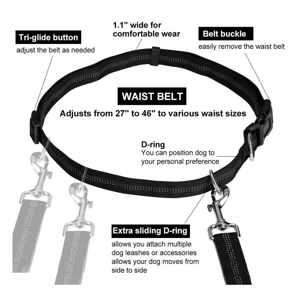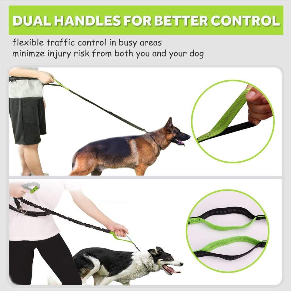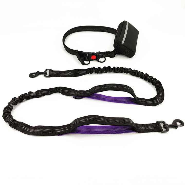 Laisse de chien réfléchissante mains libres en nylon avec sac à fermeture éclair à la taille, laisse élastique durable pour la course à pied, ceinture pour la marche
