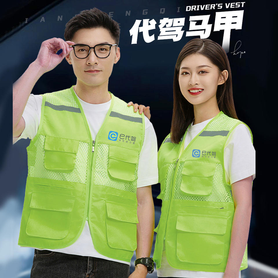 Gilet réfléchissant en maille avec plusieurs poches, vert fluorescent, pour chauffeur désigné et gestion de la livraison de repas