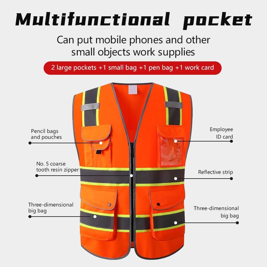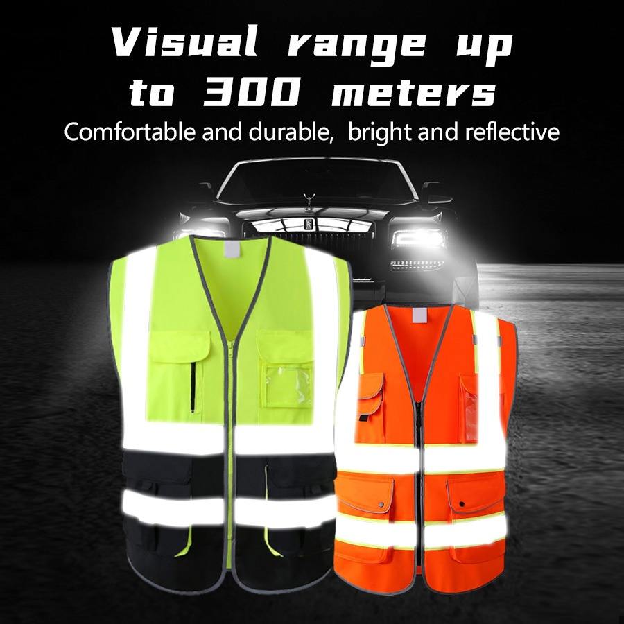 Gilet Réfléchissant Haute Visibilité avec Poches et Fermetures Éclair