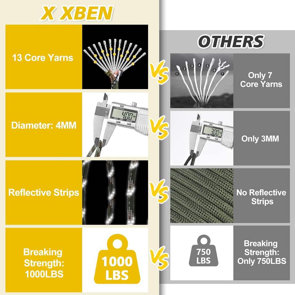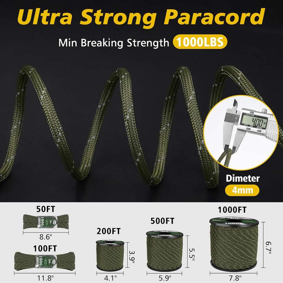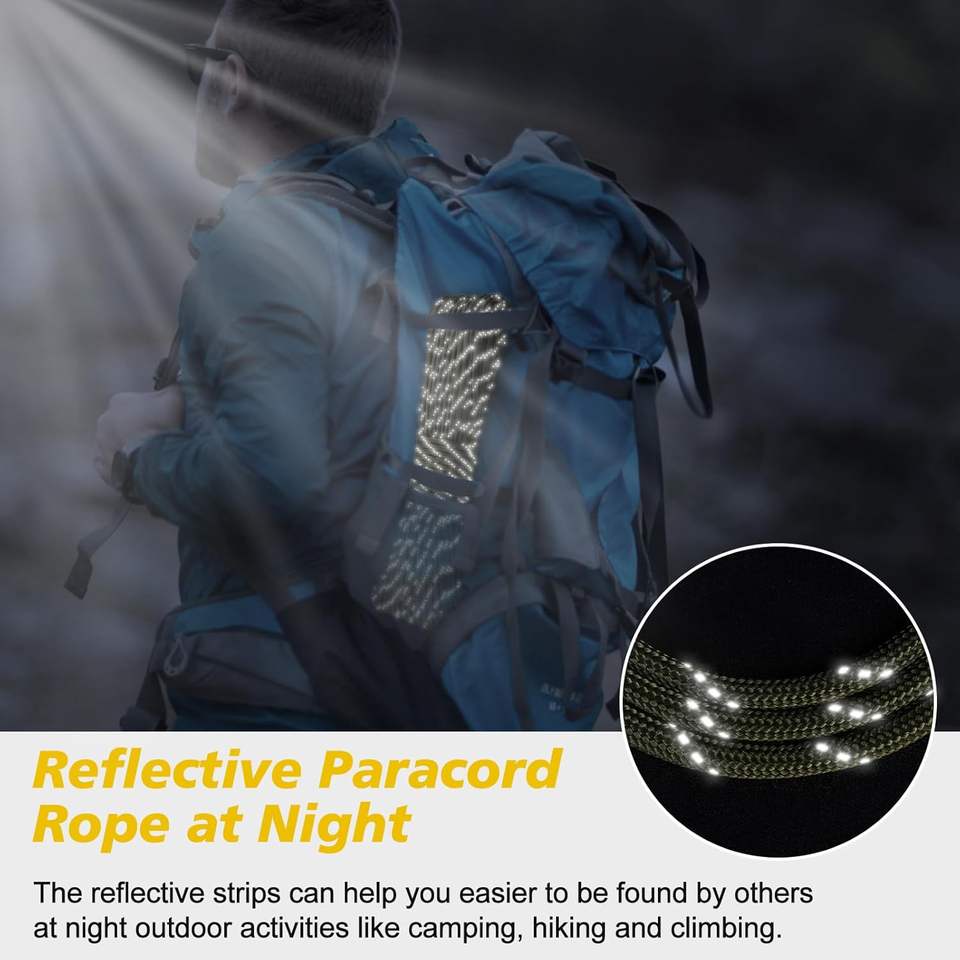 Cordon de parachute double en nylon/polyester réfléchissant, 12 brins, 750 livres, 4 mm, 32 fils, haute résistance pour le camping, la pêche, la randonnée