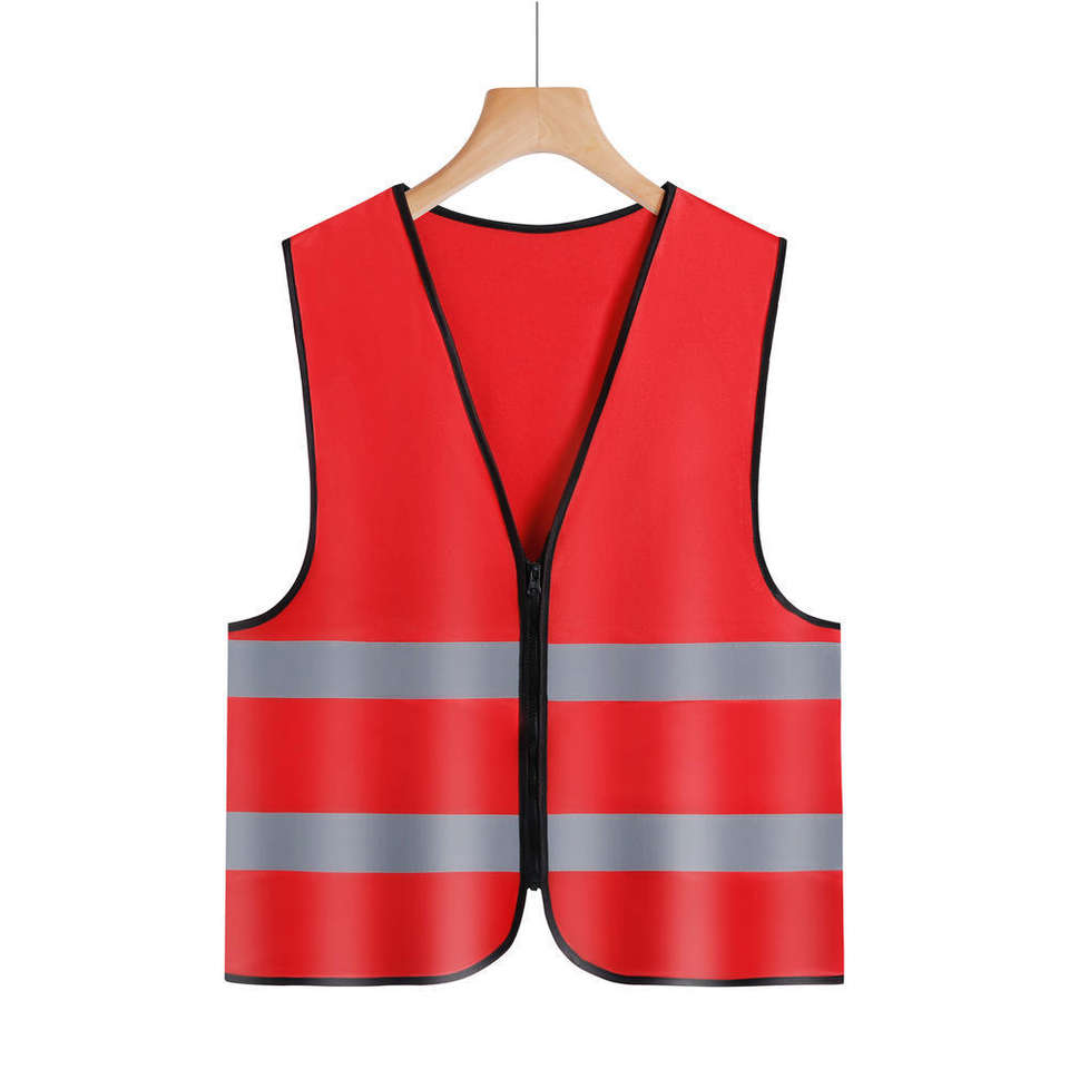 Gilet de sécurité réfléchissant rouge en fibre de polyester avec 2 bandes réfléchissantes pour travaux en extérieur et construction