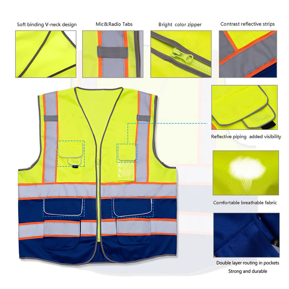 Gilet de sécurité réfléchissant pour hommes et femmes Gilet haute visibilité avec fermeture à glissière avant 5 poches renforcées et bandes réfléchissantes de 2 pouces