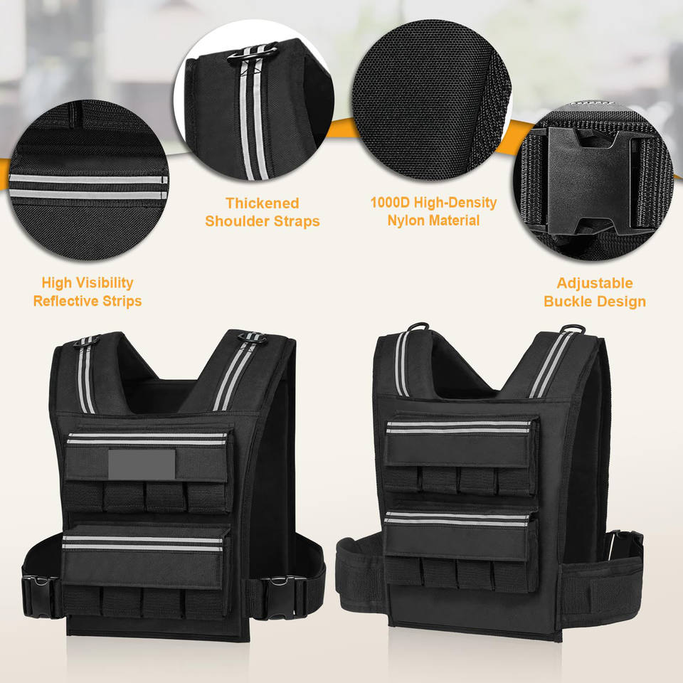 Gilet lesté à bandes réfléchissantes 6LB/8LB/12LB/16LB/20LB/25LB/30LB pour l'entraînement, la musculation et le renforcement musculaire