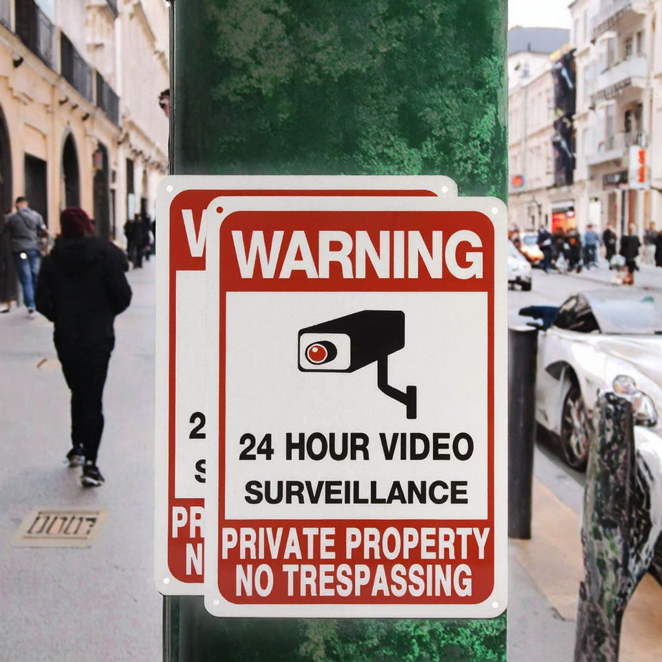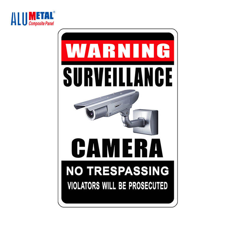 Avertissement réfléchissant 24 heures système de caméra de sécurité de vidéosurveillance en fonctionnement panneau de cour métallique