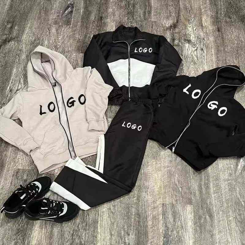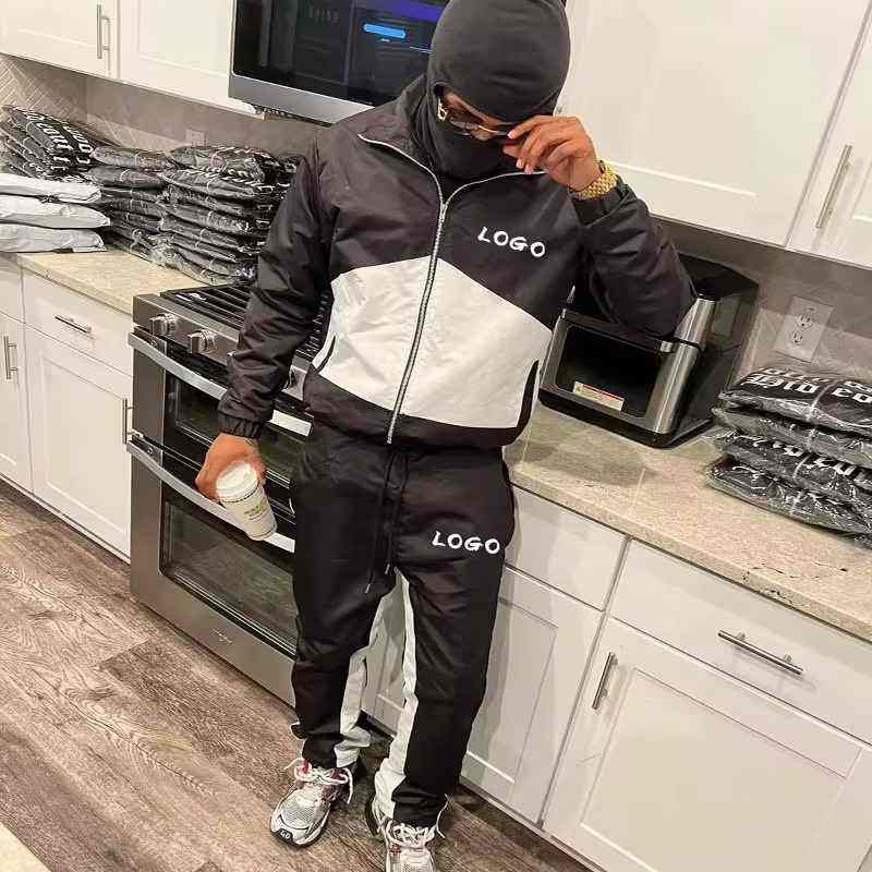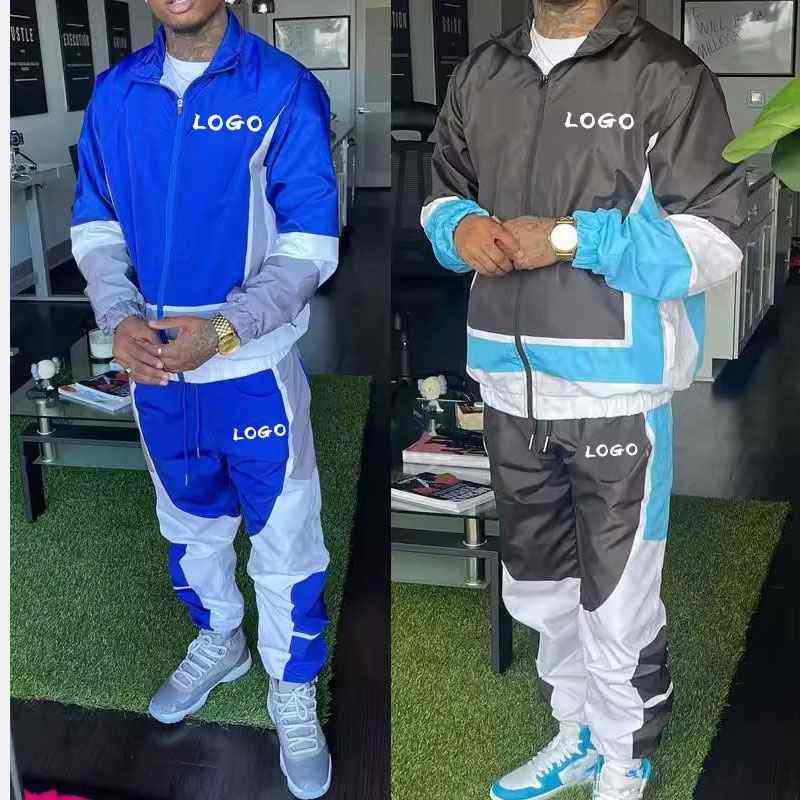 Ensemble de survêtement de jogging pour homme en nylon surdimensionné avec logo réfléchissant, fermeture éclair vintage, coupe-vent, 2 pièces, léger