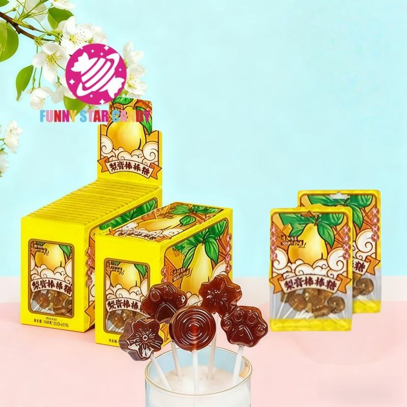 Pâte de poire d'automne rafraîchissante sucette OEM collation décontractée emballée individuellement différents types de bonbons durs à saveur fruitée sucette