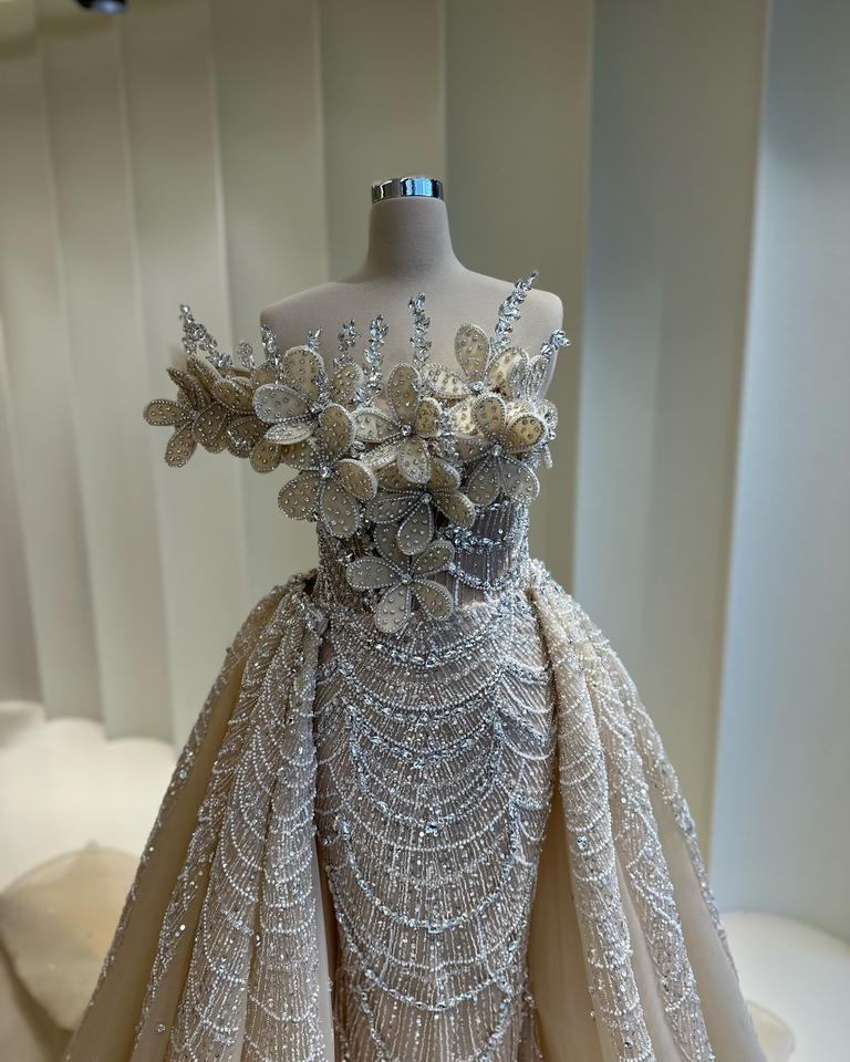 Regal Vintage Beaded Bridal Gown with Pattern for Elegant Formal Evening Parties