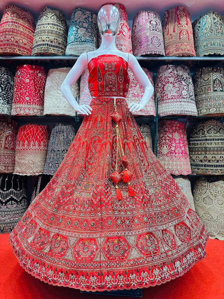Regal Bridal Lehenga Choli with Heavy Jarkan Stones Full-Hand Mirror Work Long Blouse for Winter Indian Weddings